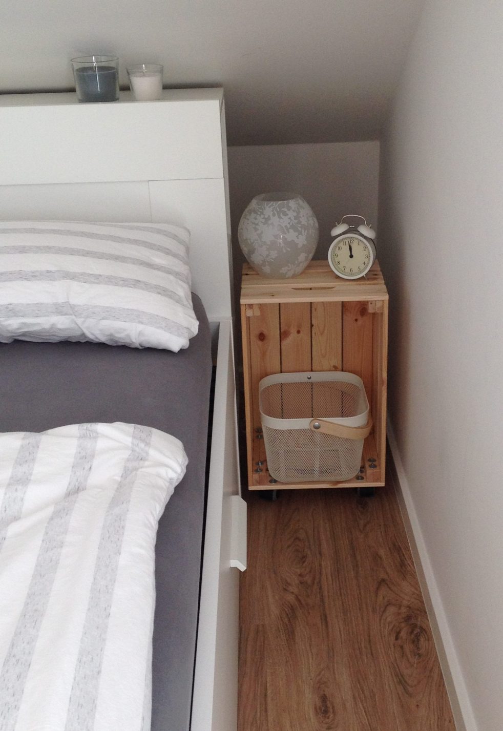 DIY: Kisten-Nachttisch mit Rollen